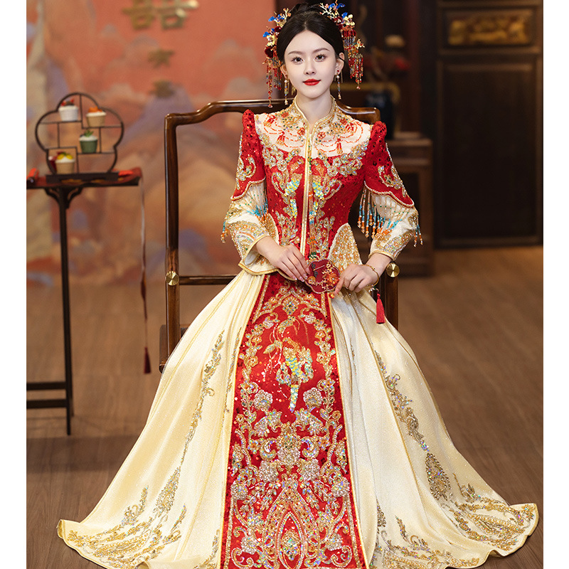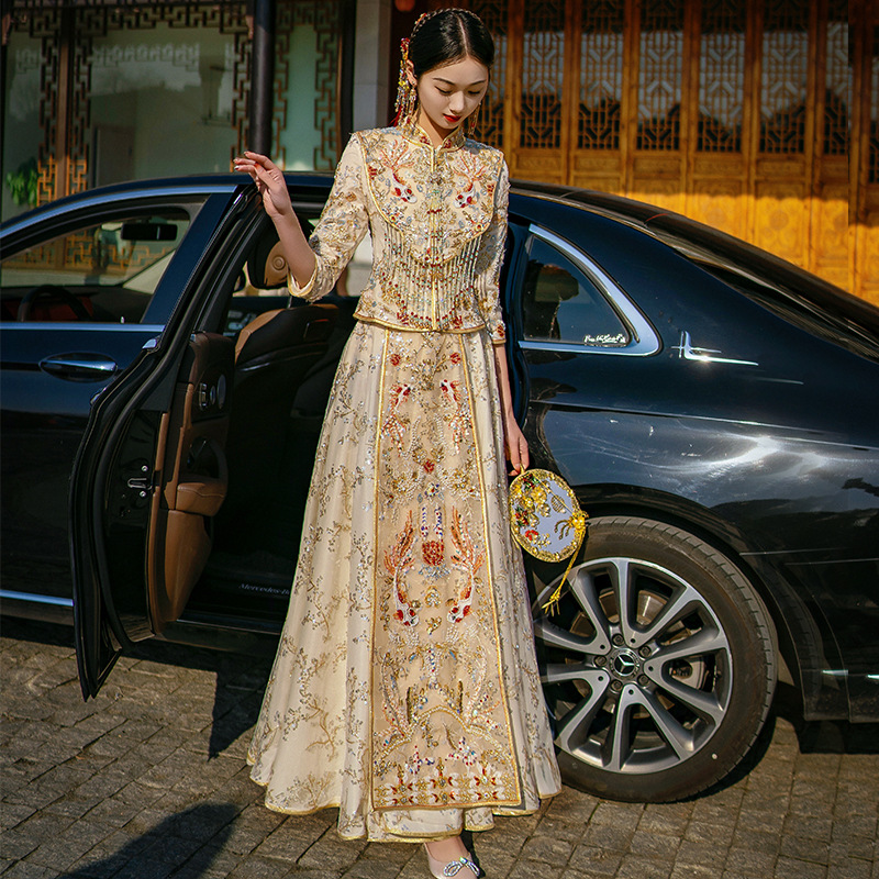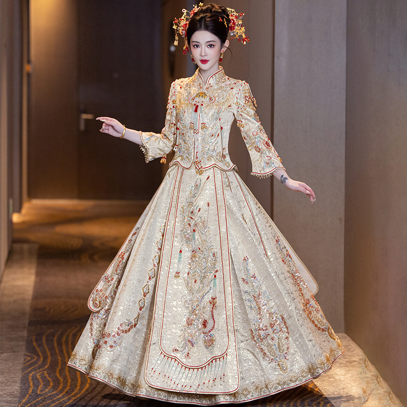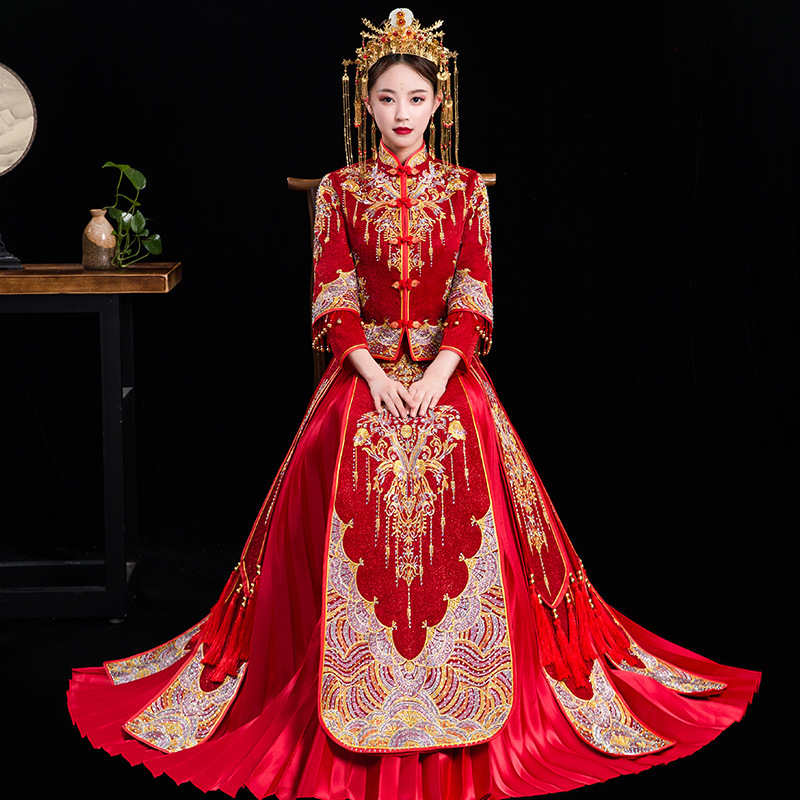 Xiuhe gaun pengantin wanita 2022, Gaun gaya China pernikahan kecil naga dan Phoenix ukuran besar Xiuhe