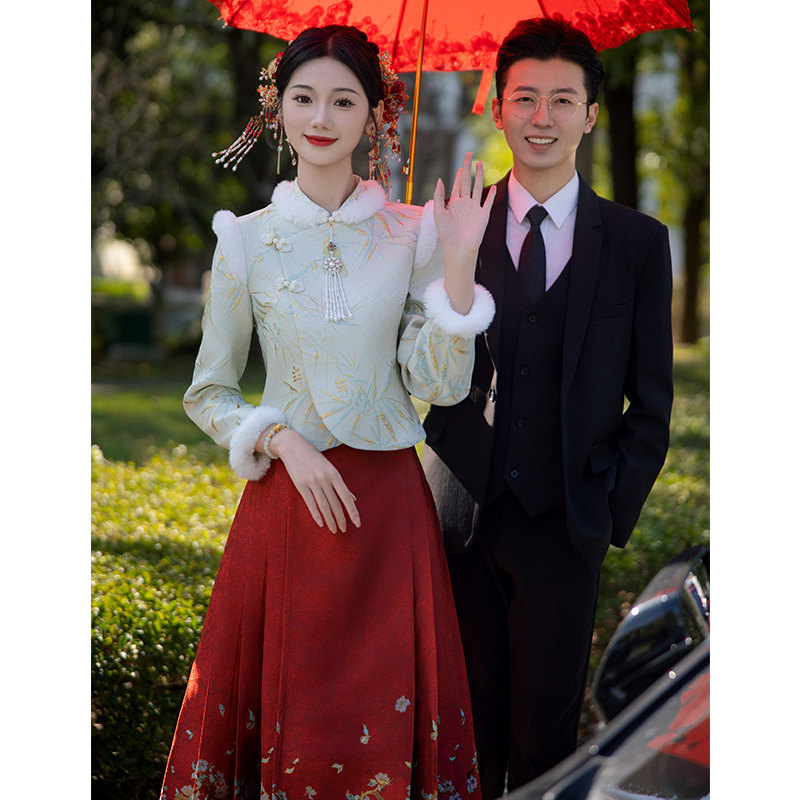 Gaun pengantin model baru 2025 gaya Ma Mian Xiuhe Hanfu, gaun pesta, gaun pengantin, gaun pertunangan gaya tradisional Tiongkok.