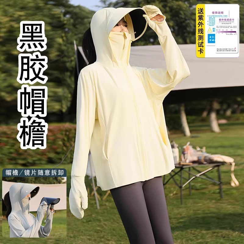 Pakaian pelindung matahari tepi pantai wanita, pakaian pelindung UV wanita UPF50 + Ice Silk tipis perlindungan matahari profesional dengan sarung tangan Musim Panas 2024