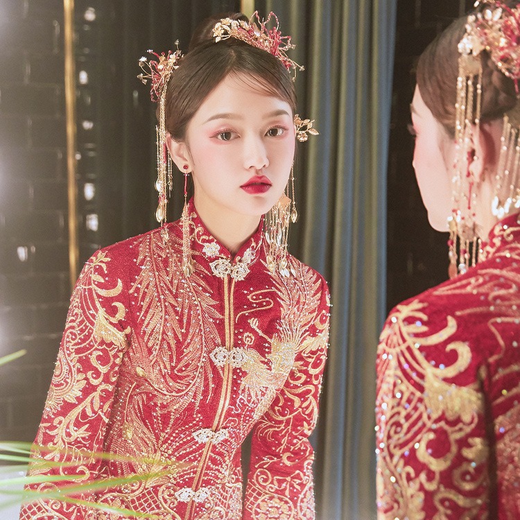 Gaun pengantin Xiuhe, gaun pengantin wanita Xiuhe Tiongkok baru, gaun pengantin kecil, gaun Xiuhe Musim Dingin 2023