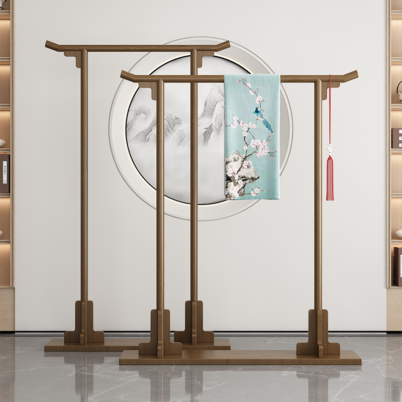 Gantungan baju kayu solid bergaya Tiongkok, rak mantel vertikal sederhana, rak kayu tampilan pakaian Xiuhe