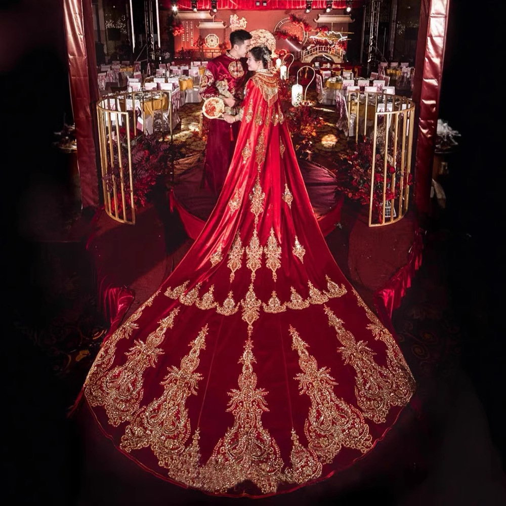 Gaun pengantin custom-made mewah model ramping, koleksi terbaru musim gugur dan dingin 2025, gaya Cina, gaun pengantin kimono untuk wanita.