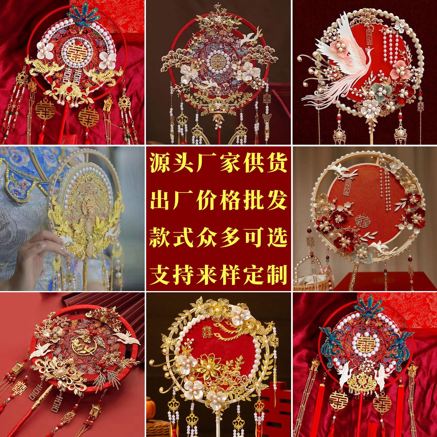 Kipas bulat pengantin kipas pernikahan diy produk jadi buatan tangan kipas genggam merah sampanye kipas cheongsam Xiuhe chinoiserie