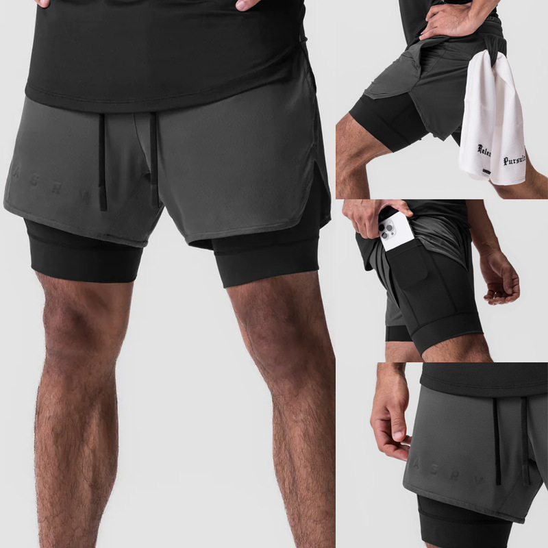 Celana pendek pria musim panas olahraga kebugaran 2-in-1 lapisan ganda celana pendek jaring tebal cepat kering bernapas peregangan celana pantai