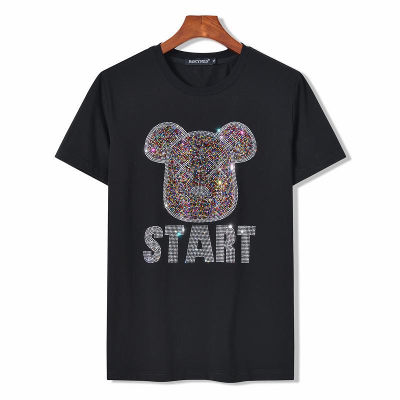 T-shirt lengan pendek, gaya sama ukuran besar katun beruang warna berlian imitasi lengan pendek untuk pasangan pria dan wanita