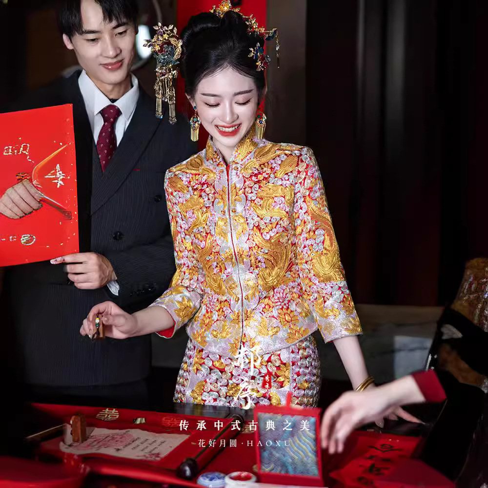 Gaun naga dan Phoenix baru musim dingin 2024 gaun pengantin wanita Cina gaun pengantin wanita kelas atas gaun Xiuhe kerja berat gaun Ratu