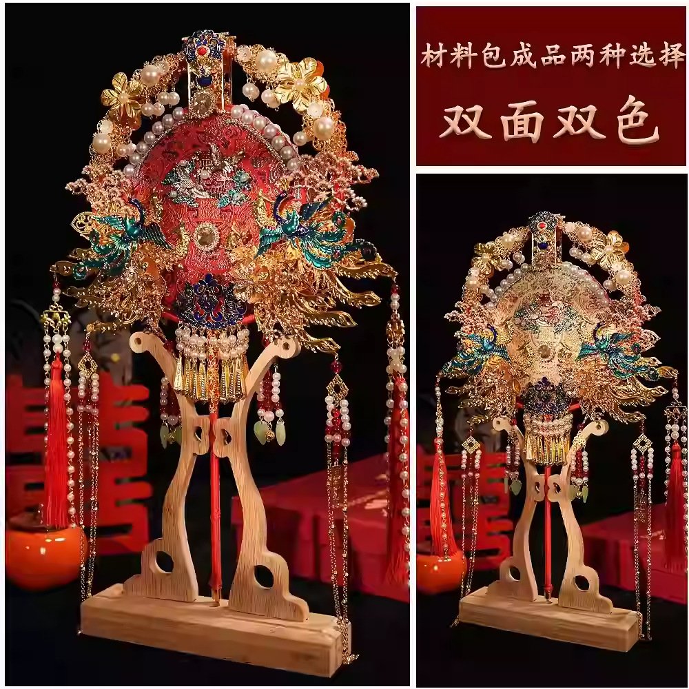 Kipas Pernikahan Pengantin Wanita Gaya Cina Pakaian Gaya Kuno Pakaian Bahan DIY Produk Jadi Dua Sisi Produk Buatan Tangan Kipas Kebahagiaan Kelas Tinggi