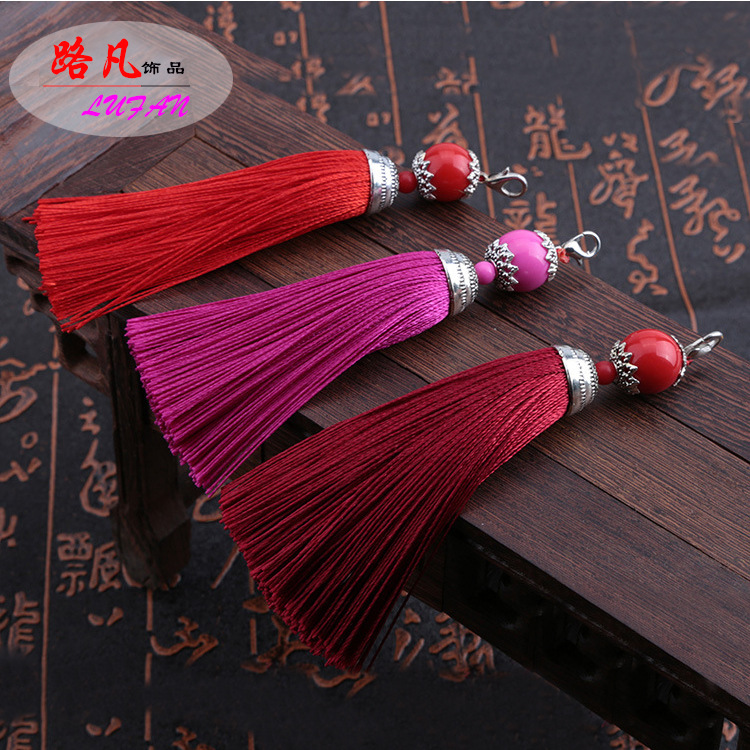 Rumbai panjang 13CM rumbai sutra es rumbai DIY seruling cheongsam Hanfu kartu pinggang rumbai kipas gantung mobil