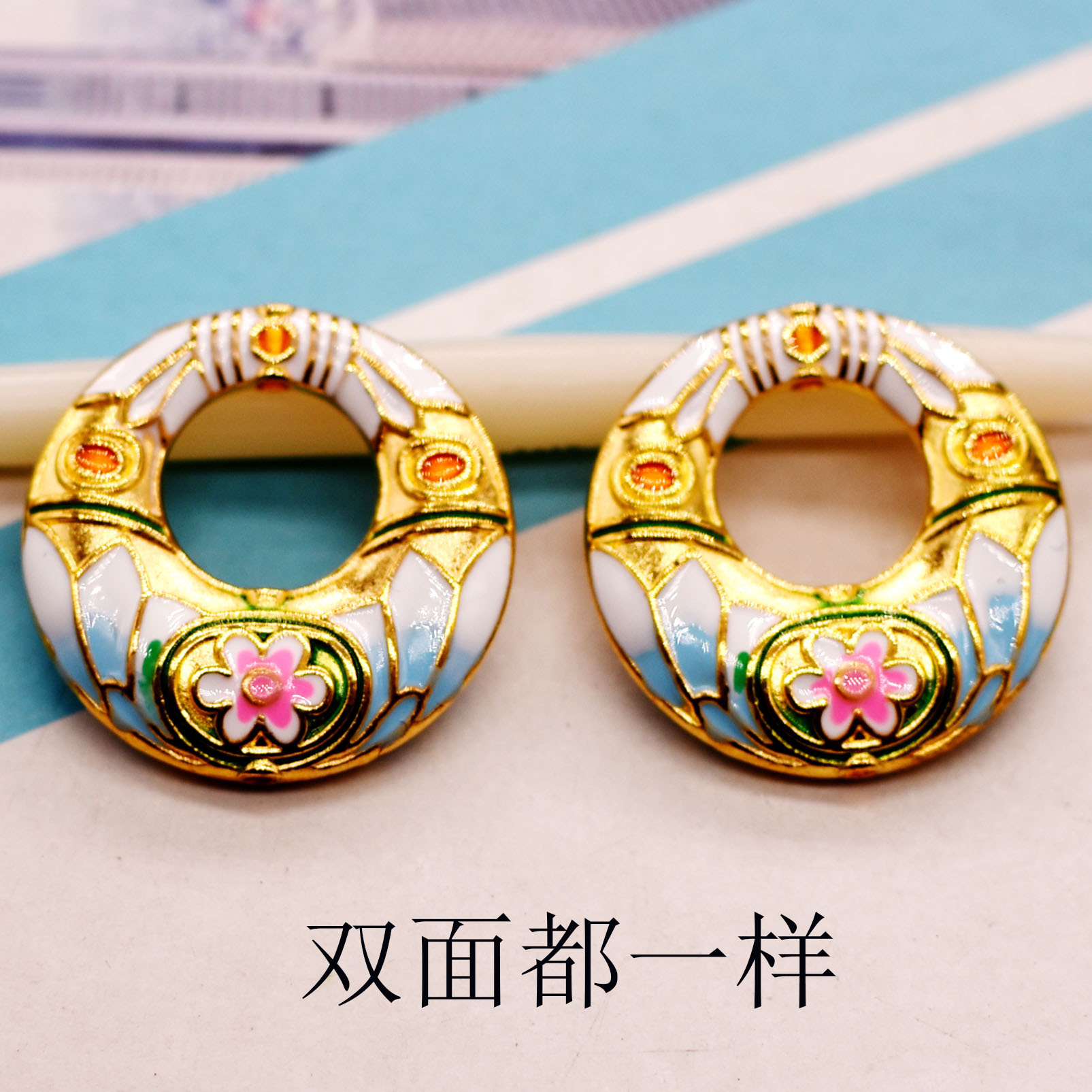Alloy dripping cloisonne bulat lubang ganda tas Lotus manik cincin pengantin hehe setelan dada liontin bun bahan liontin