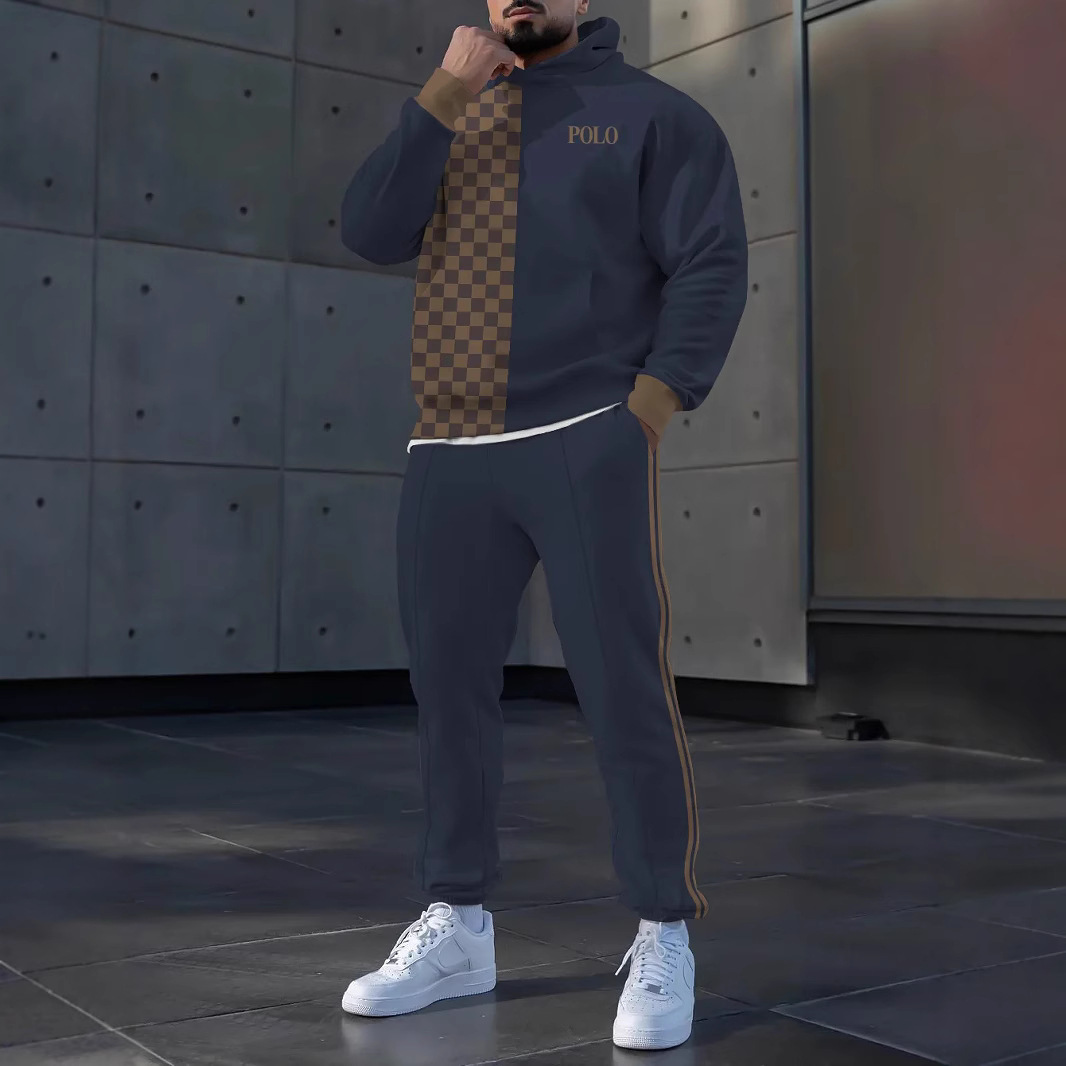 Setelan Sweater Bertopi Pria Musim Gugur dan Musim Dingin Setelan Olahraga Santai Longgar Dua Potong Lintas Batas Stasiun Independen Khusus