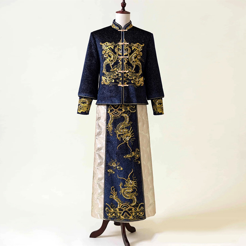 Xiuhe pakaian pria 2023 baru naga dan Phoenix gaun gaya Cina gaun pengantin laki-laki pakaian bersulang pernikahan setelan Tang xiukimono