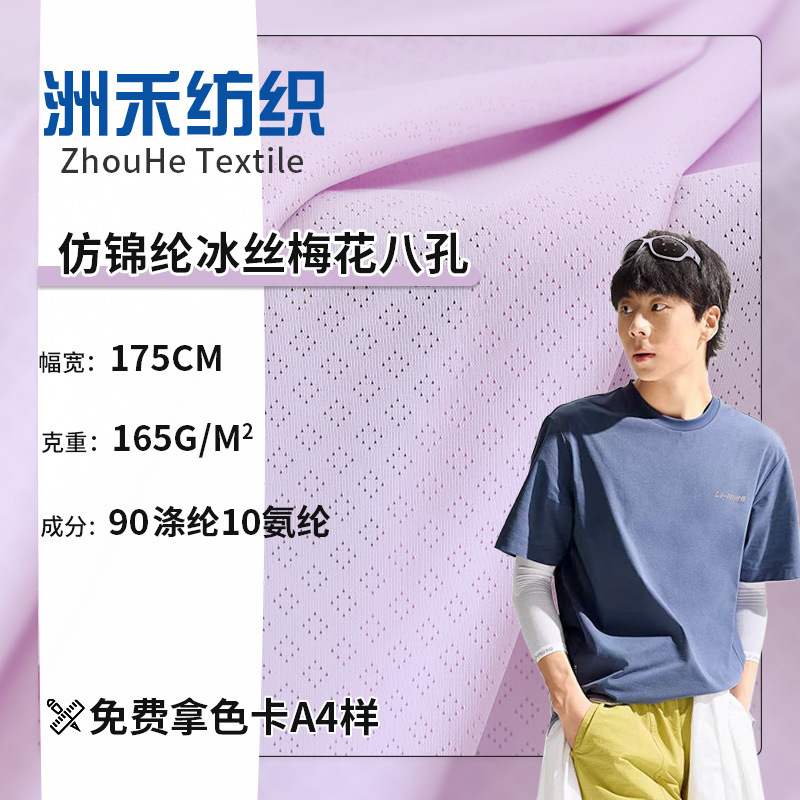 165G Imitasi Nylon Es Sutra Plum Delapan Lubang Musim Panas Dingin Imitasi Nylon Kain Tenun Bernapas Kain T-Shirt Olahraga