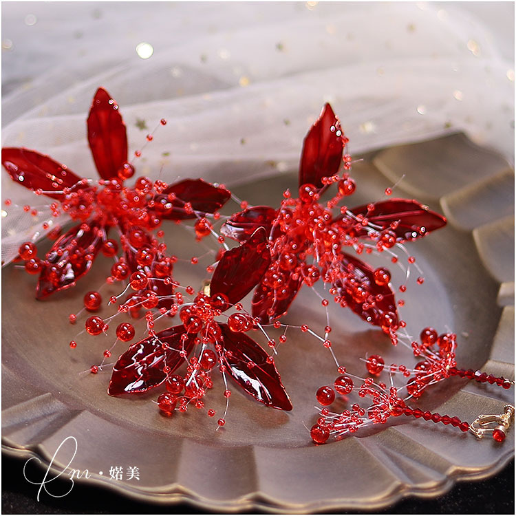 Aksesori rambut Xiuhe bunga cair buatan tangan kostum Cheongsam klasik Tiongkok perhiasan gaun roti merah hiasan kepala pengantin