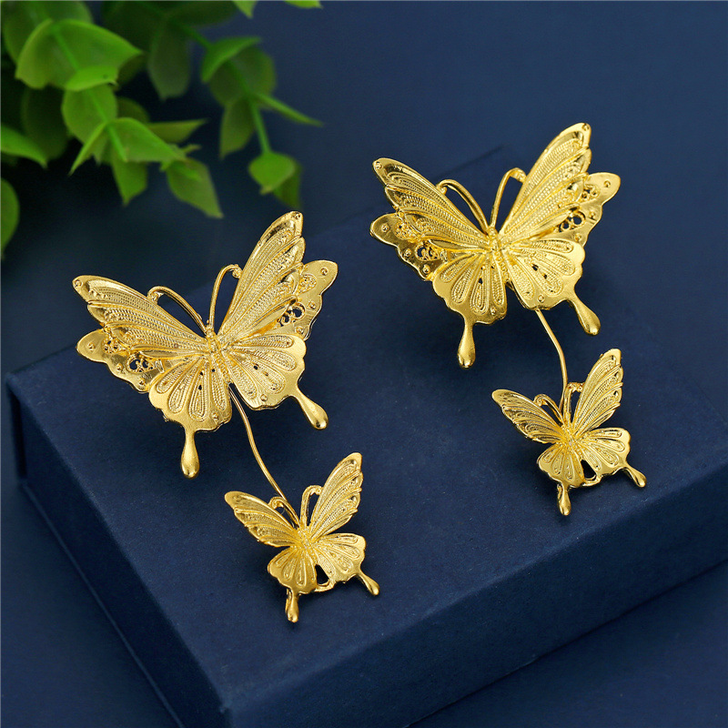 Anting-anting Pernikahan Pengantin Wanita Anting-anting Kupu-kupu Emas Anting-anting Gaun Naga dan Phoenix