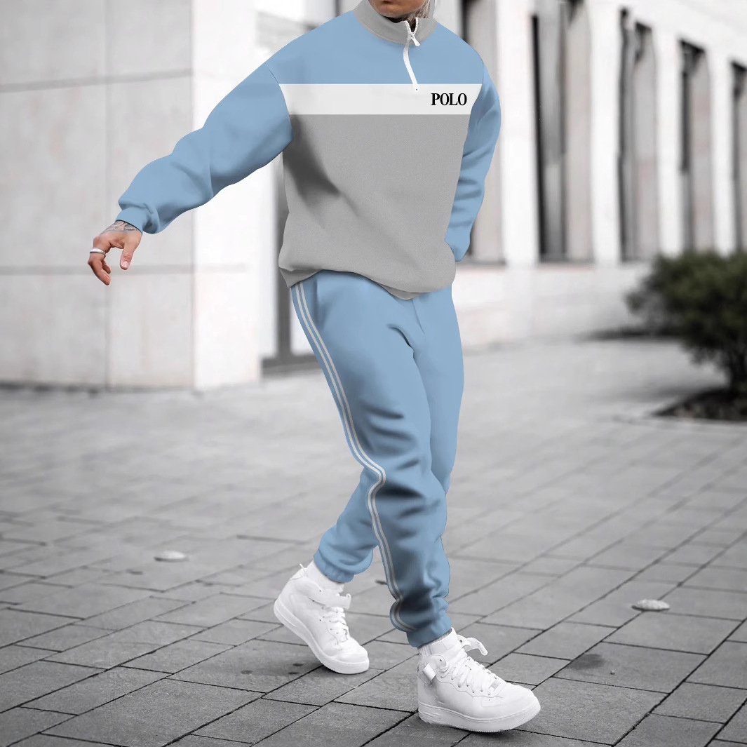 Set Sweater Kerah Bulat Pria Kasual Olahraga Pencetakan Digital 3D Sederhana Modis Musim Gugur Musim Dingin