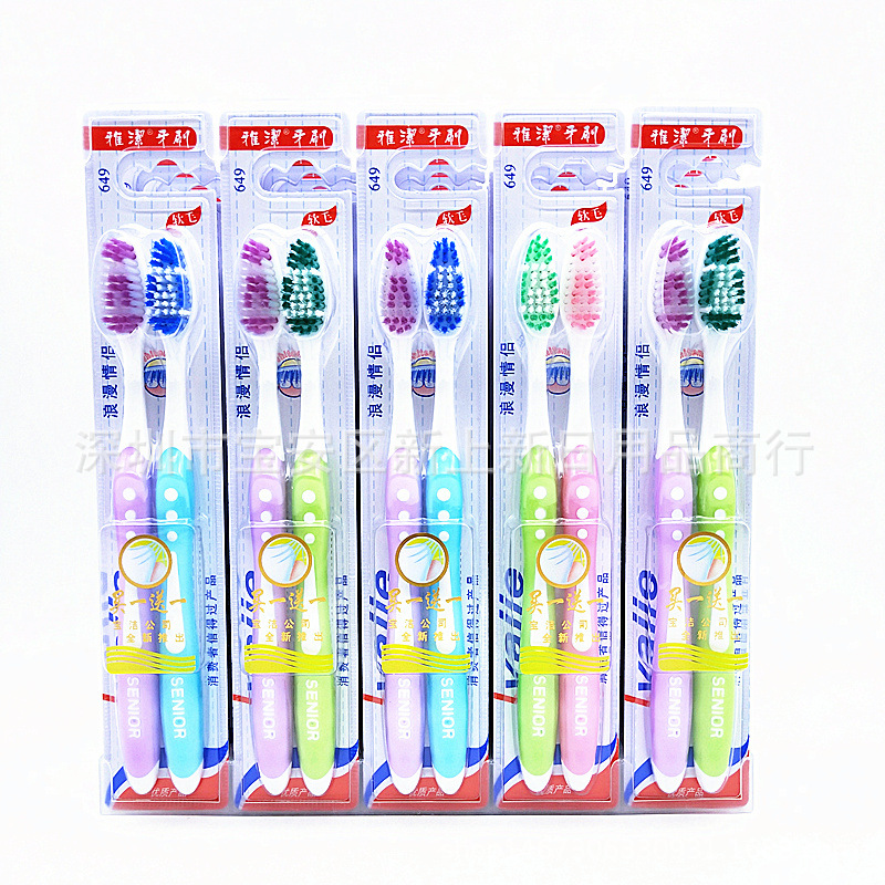 Yajie 649 sikat gigi pasangan 2 buah sikat gigi 1 + 1 setelan sikat gigi dua yuan shop Harga pabrik sikat gigi grosir