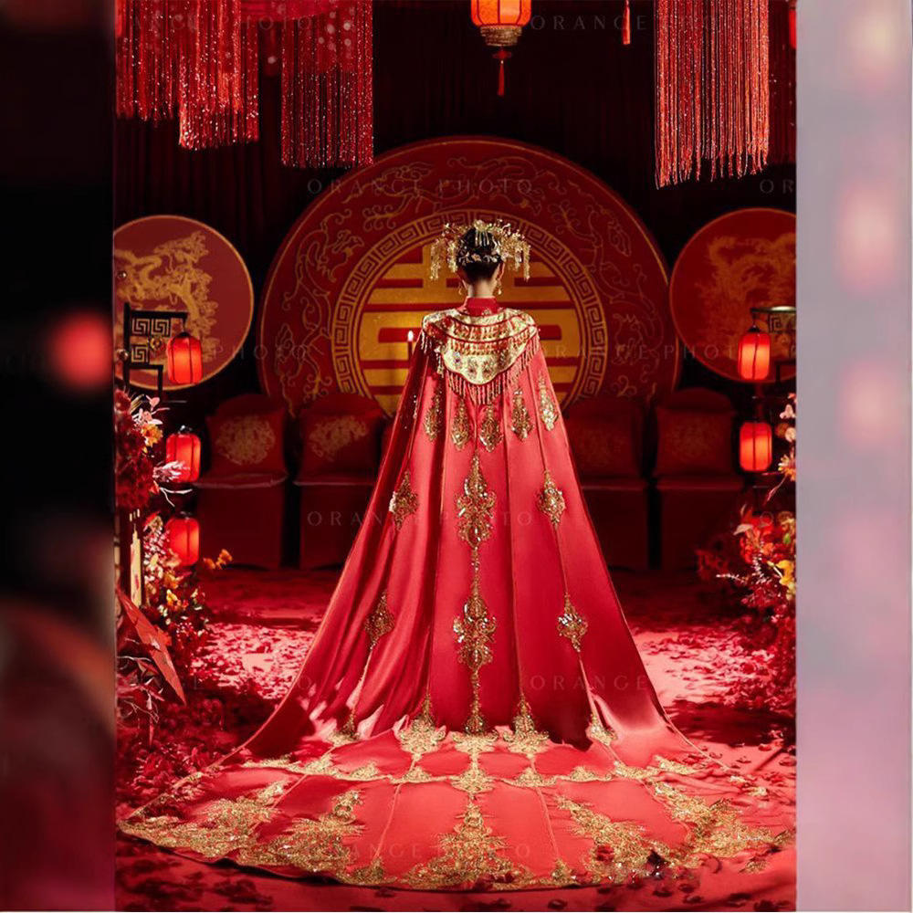 Pakaian Xiuhe Gaya Tiongkok Zhonggong Gaun Pengantin Wanita Model Baru 2025 Gaun Pernikahan Retro Gaun Pengantin Feng Guanxia