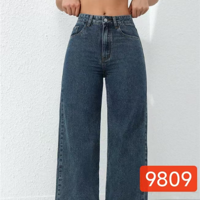 Celana Jeans Lurus Wanita Model Baru 2025 Celana Panjang Pipa Asap Tubuh Kecil Terlihat Ramping Elastis Pinggang Tinggi