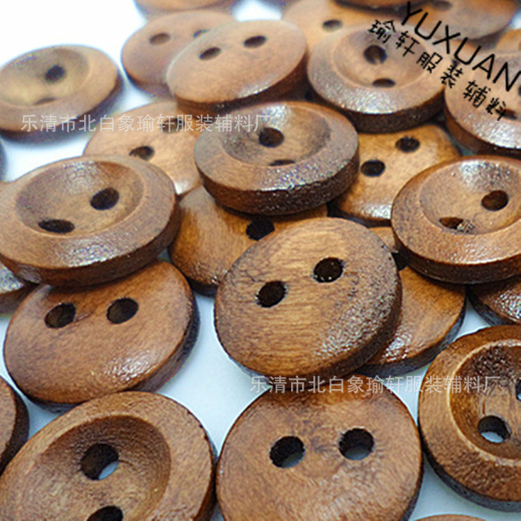 Produsen menyediakan stok tombol kayu (coklat), terbalik dua mata tombol kayu