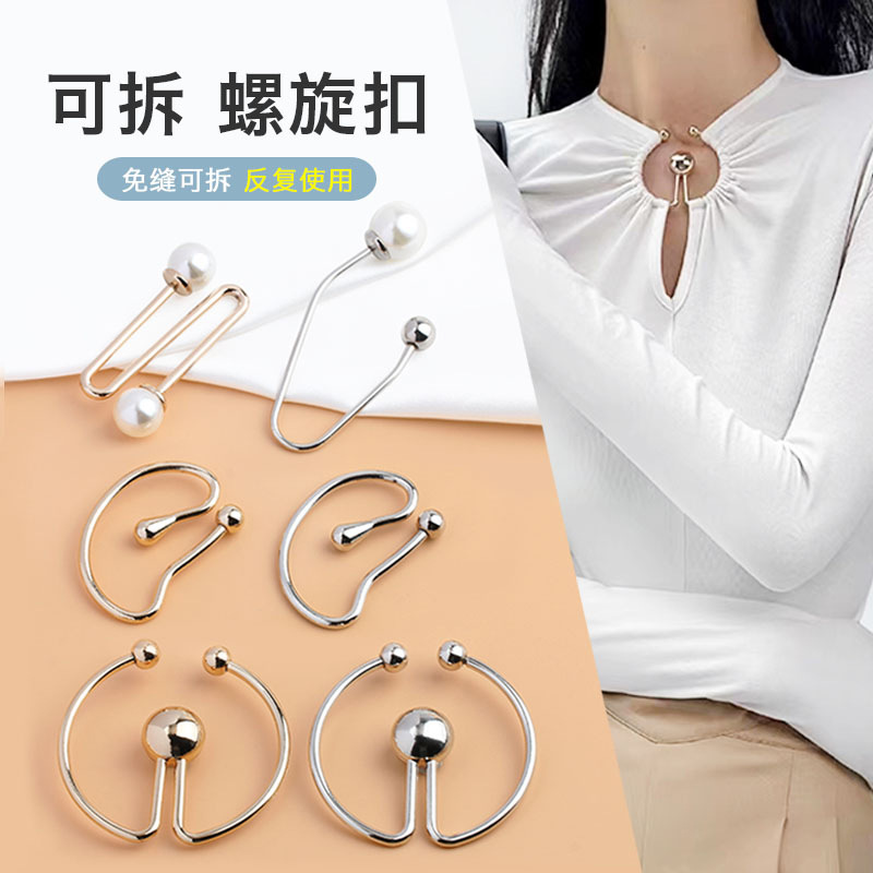 Logam berbentuk khusus spiral gesper dapat dilepas mutiara gesper kerah anti-paparan Gaun kaus kancing kardigan