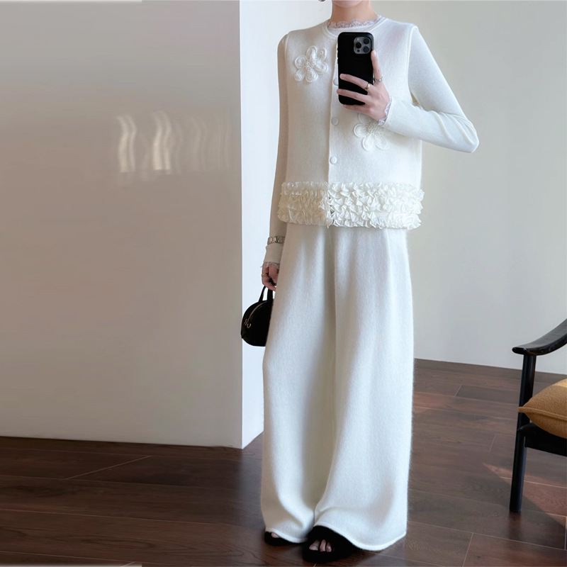 Rompi Rajutan Bunga Shuang Shenghua Atasan Pinggiran Jamur Kelopak Buatan Tangan Kerah Bulat Gaya Chanel Model Baru Musim Semi dan Musim Gugur 2025 Wanita Trendi