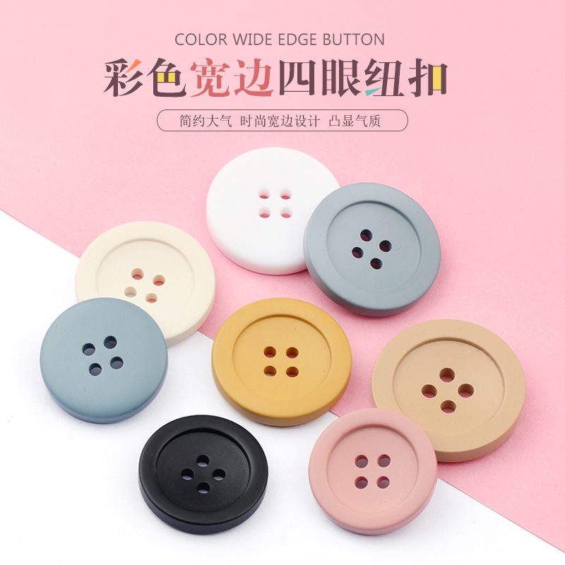Sweater wanita, perlengkapan grosir kancing tepi lebar resin mantel penahan angin bulat Empat Mata tombol dekoratif