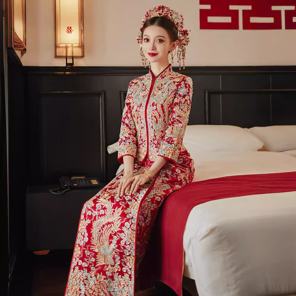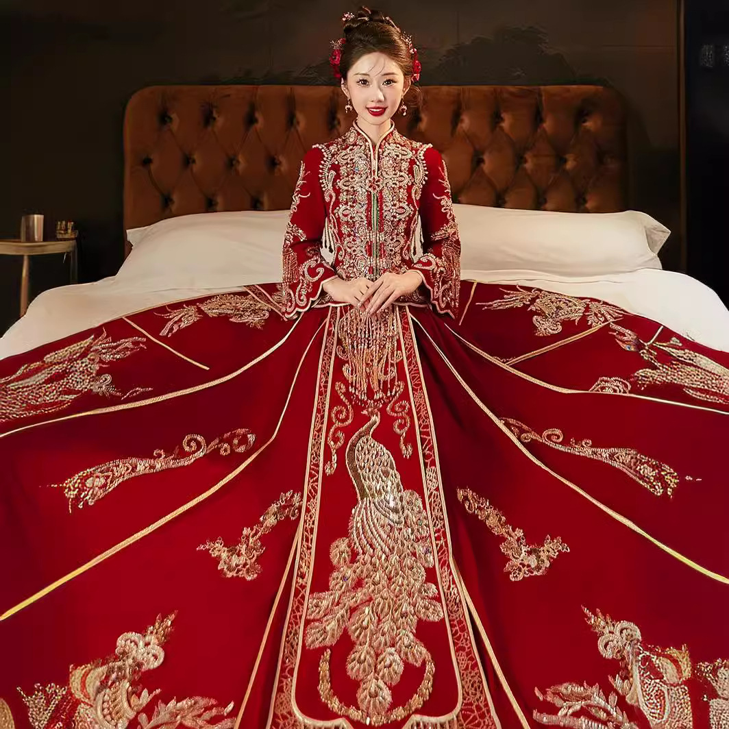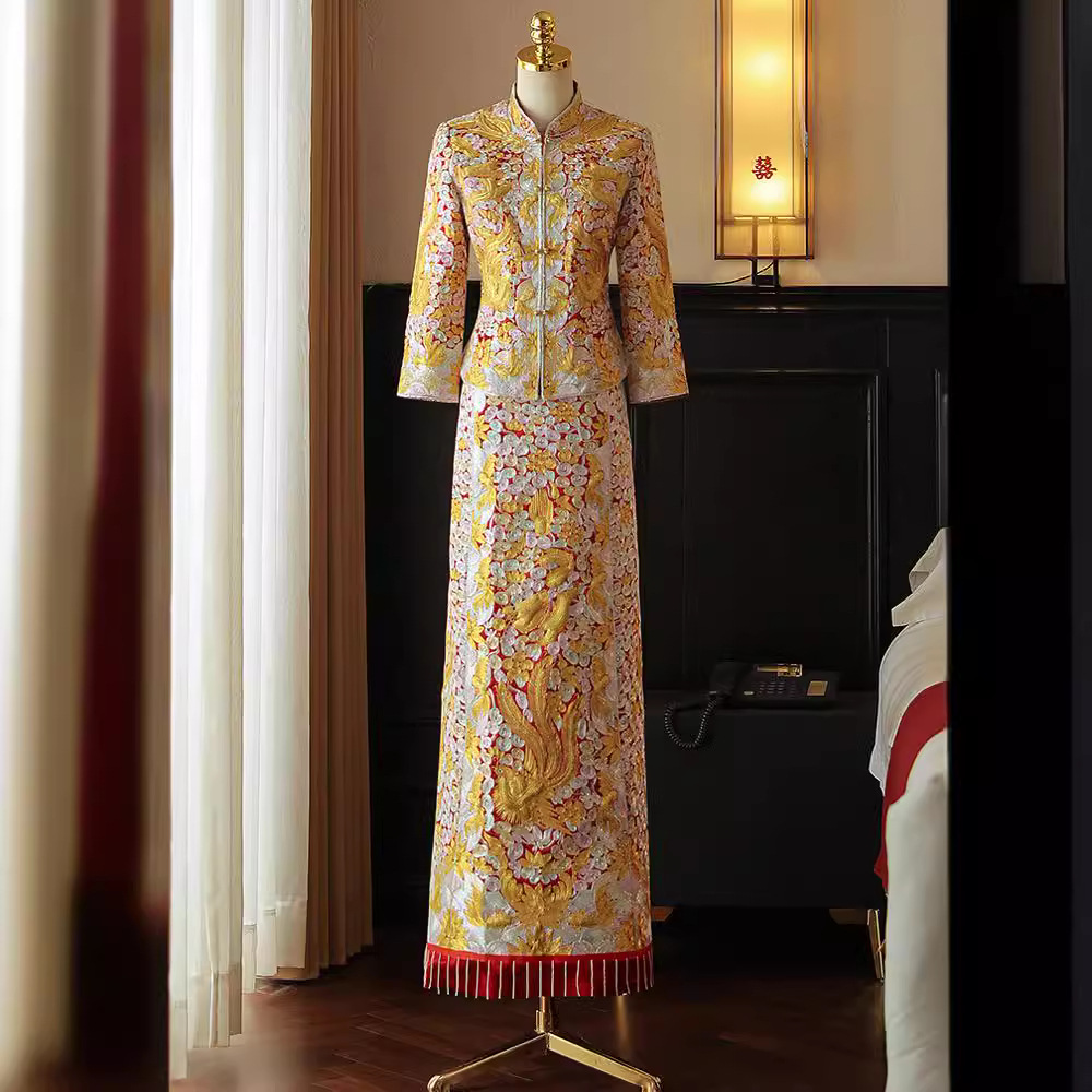 Gaun pengantin naga dan Phoenix 2024, Gaun industri berat, gaun pernikahan senior baru Xiuhe Cina
