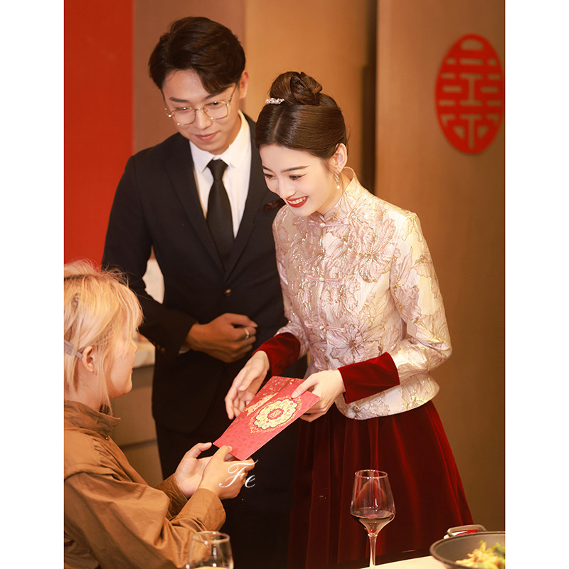 Pakaian beludru Xiuhe musim gugur 2023, gaun pengantin tersenyum baru [Jincheng] industri berat kelas atas gaun pernikahan Xiuhe Cina