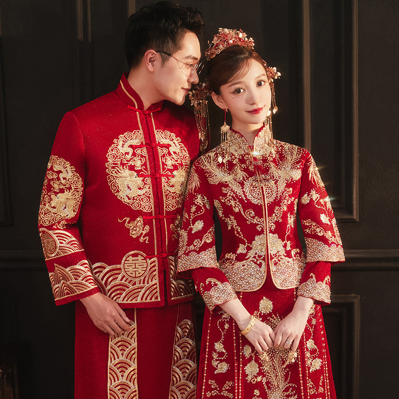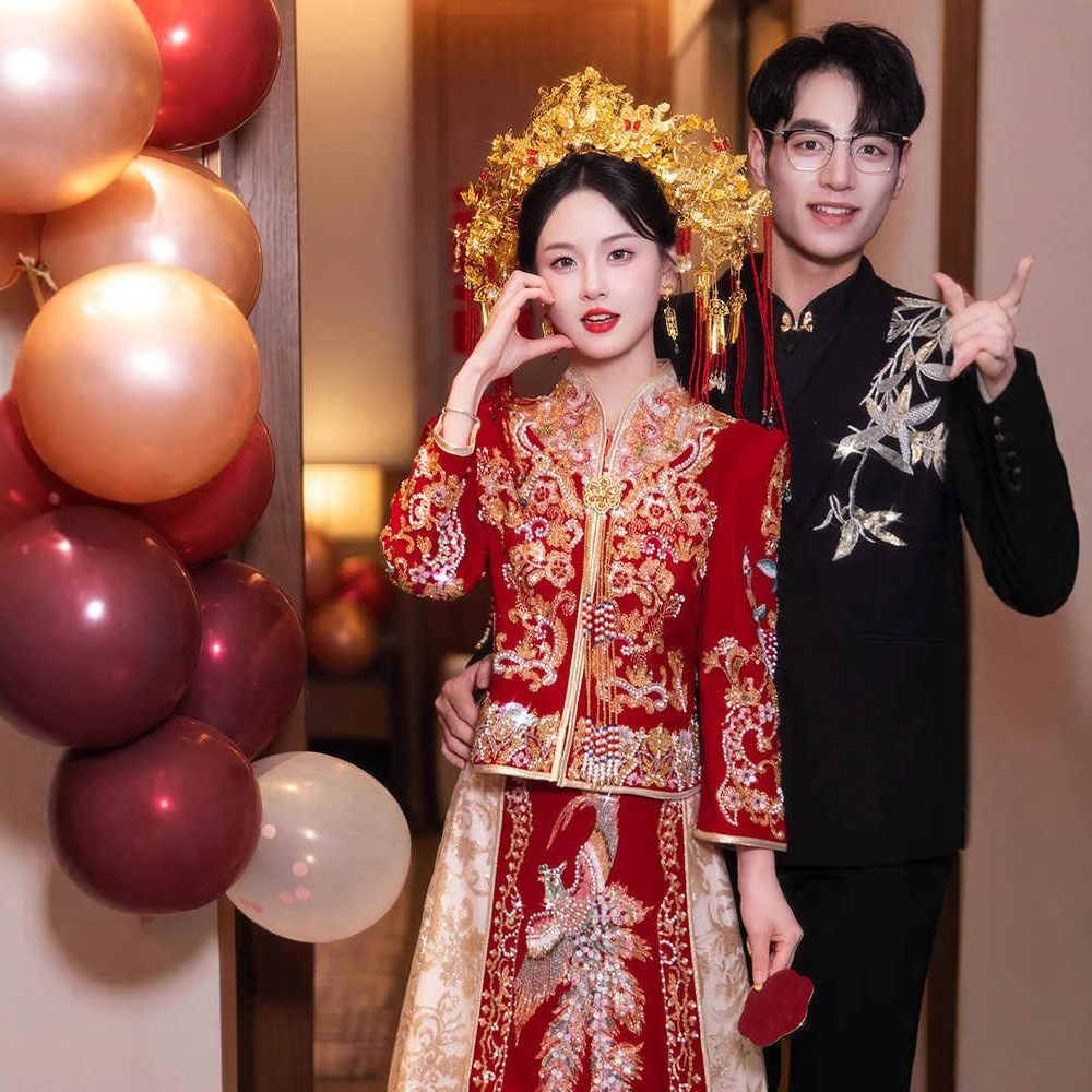 Pakaian Xiuhe Pakaian Pengantin Gaya Tiongkok Model Baru 2025 Pakaian Pernikahan Pakaian Pernikahan Pakaian Pengantin Setelan Pasangan Pria dan Wanita Memamerkan Pakaian Kimono Pekerja Berat