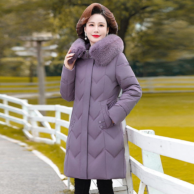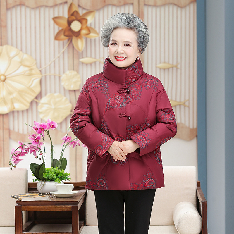 Pakaian ibu paruh baya dan lansia 90 putih mantel bulu angsa 60 tahun 70 Nenek tebal jaket pendek pakaian wanita tua
