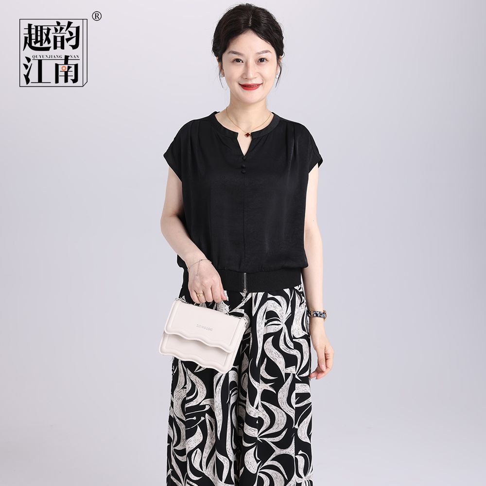 Set Bersuasana Setengah Baya dan Bermartabat Kasual Usia Muda Modis Gaya Barat Lengan Pendek Model Baru Musim Panas Ibu Jiangnan