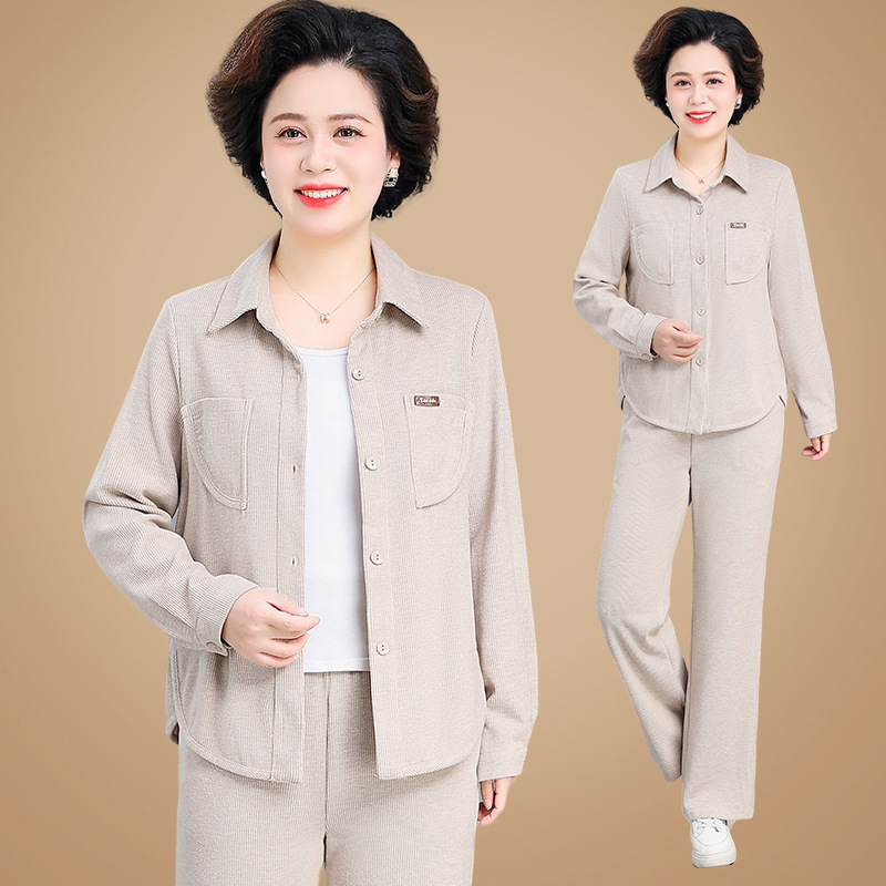 Pakaian wanita paruh baya dan lansia, pakaian modis kasual celana dua potong pakaian ibu mertua celana panjang setelan naik dan turun 2024
