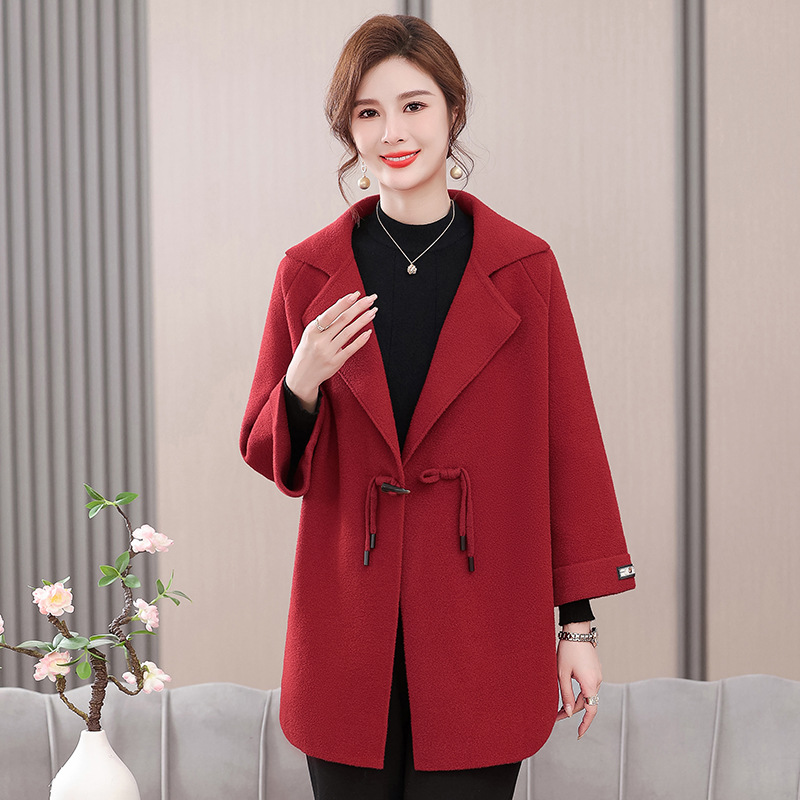 Mantel ibu longgar ukuran besar, mantel wol dua sisi imitasi usia sedang, kardigan ukuran besar musim gugur 2023