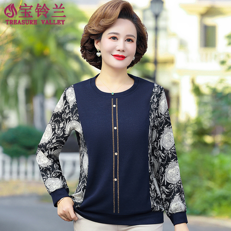 Weishang sweater bottoming untuk ibu, kemeja wanita usia sedang temperamen Musim Semi dan Musim Gugur Dalaman pakaian musim semi dan orang tua 2023