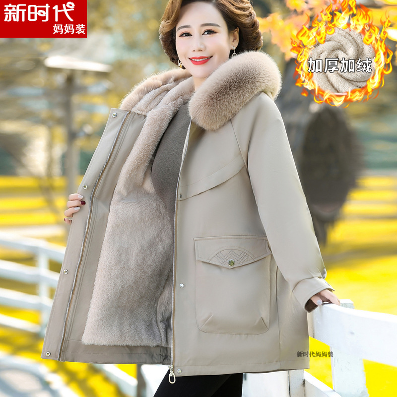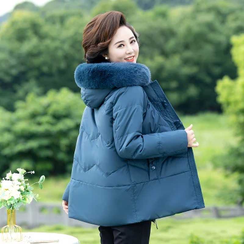 Mantel Ibu musim dingin, setelan katun hangat, setelan wanita usia sedang, berlapis bulu tebal, mantel musim dingin, mantel ibu