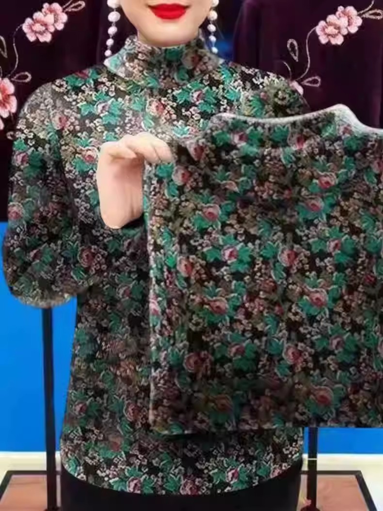 Perdagangan luar negeri-2023 bulu berjajar tebal musim dingin ibu memakai gaya barat setengah turtleneck gaya barat dicetak Atasan tren fashion serbaguna