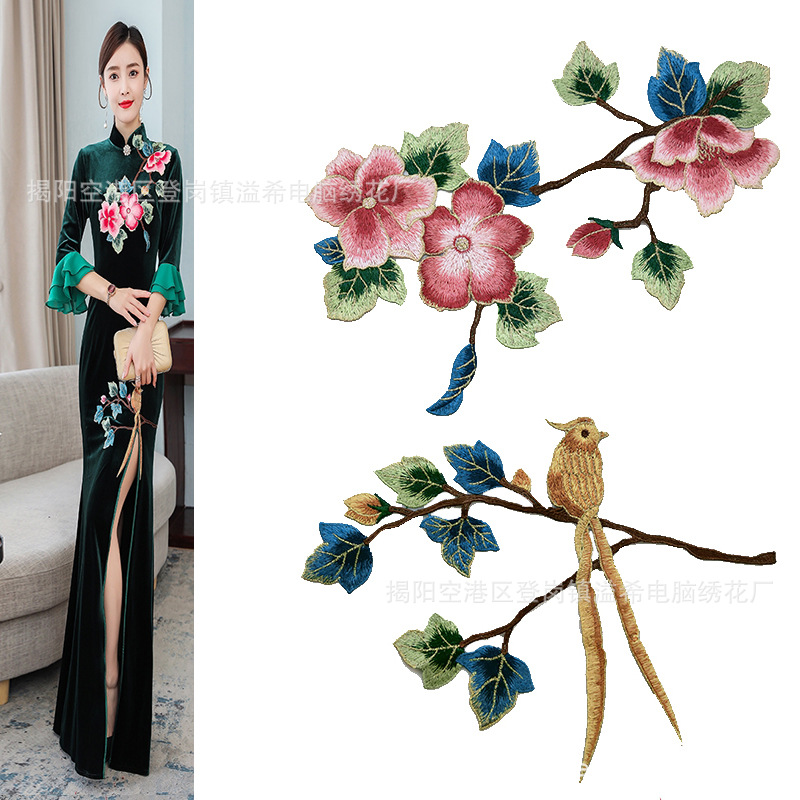 Yixi bordir larut air bordir gaya etnik Phoenix bunga kain besar stiker kostum gaun pakaian aksesoris