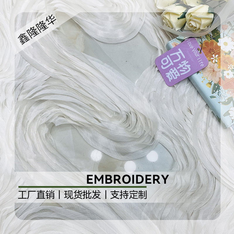 Bunga yang Larut dalam Air Tiga Dimensi Renda Bordir Renda Gaun Tempat Gaun Malam Kain Lace Renda Bordir Penuh