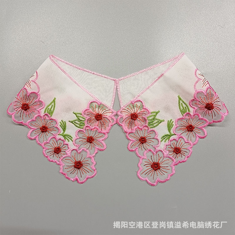 Yixi bordir kerah boneka modis bordir berongga kiri dan kanan bunga simetris aksesori pakaian kerah palsu renda