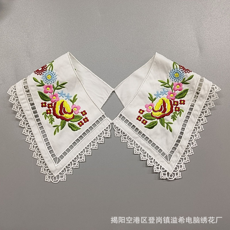 Yixi bordir kerah boneka bordir berongga kiri dan kanan bunga simetris palsu kerah aksesoris pakaian renda
