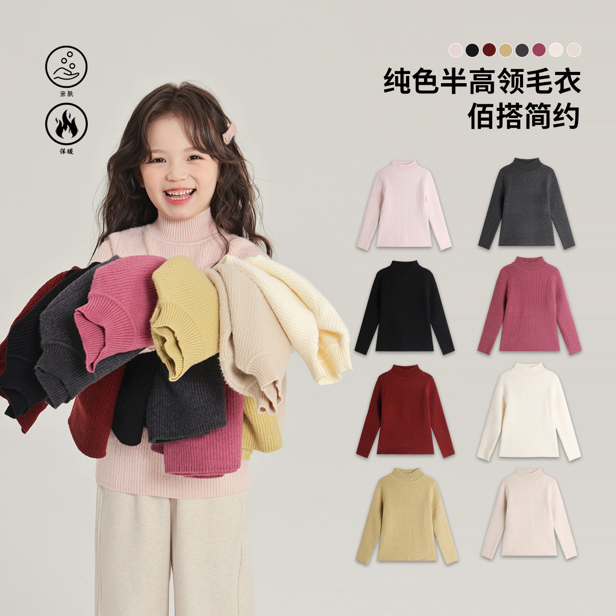 布丁哈鲁童装打底衫2024冬款女童半高领针织打底衫亲肤佰搭毛衣
