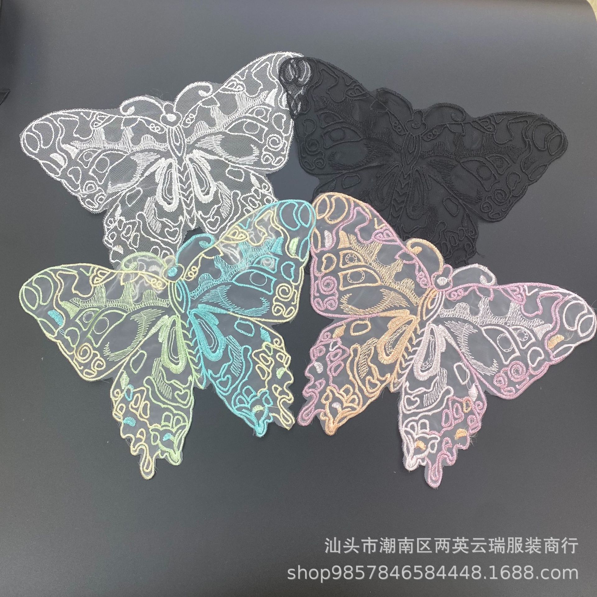 热销渐变色蝴蝶翅膀 DIY手工蕾丝水溶蝴蝶 欧根纱蝴蝶刺绣布贴