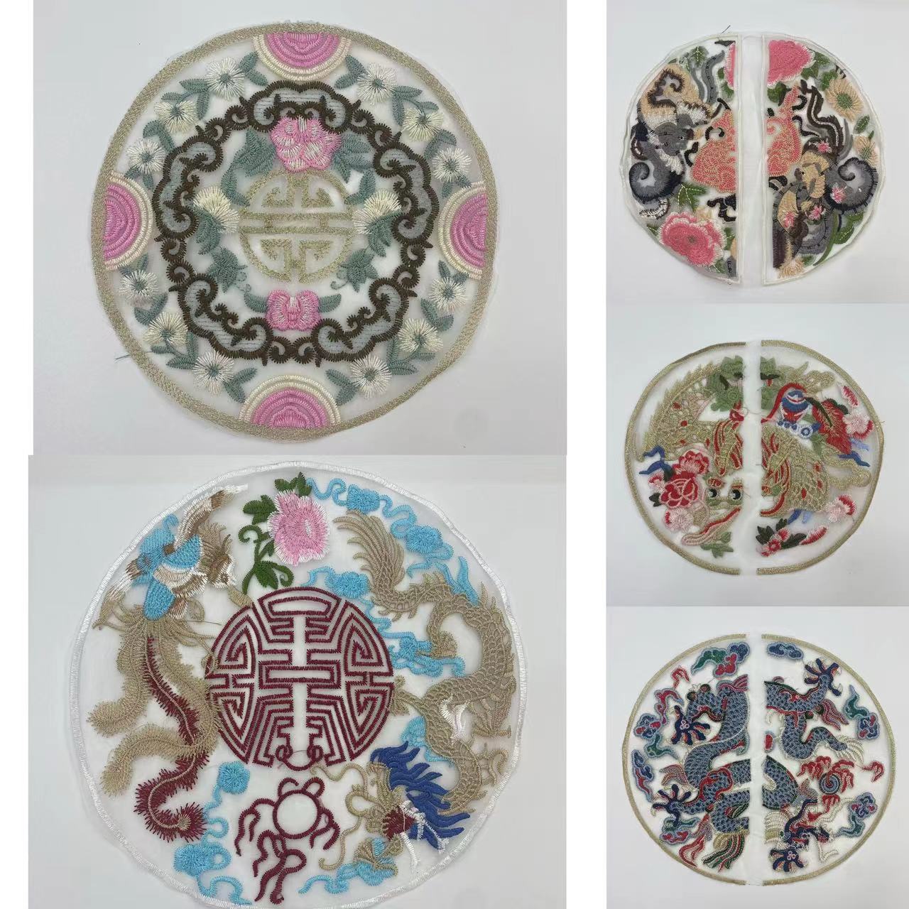 新款圆形国潮古风衣服补丁贴中式刺绣布贴大号欧根纱手缝绣花辅料