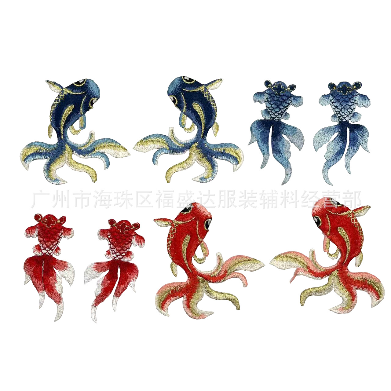 Bordir Ikan Mas Kecil Bunga Tempel Larut Air Tas Harum Gaya Etnik Aksesori Pakaian Bunga Tanpa Lem Grosir