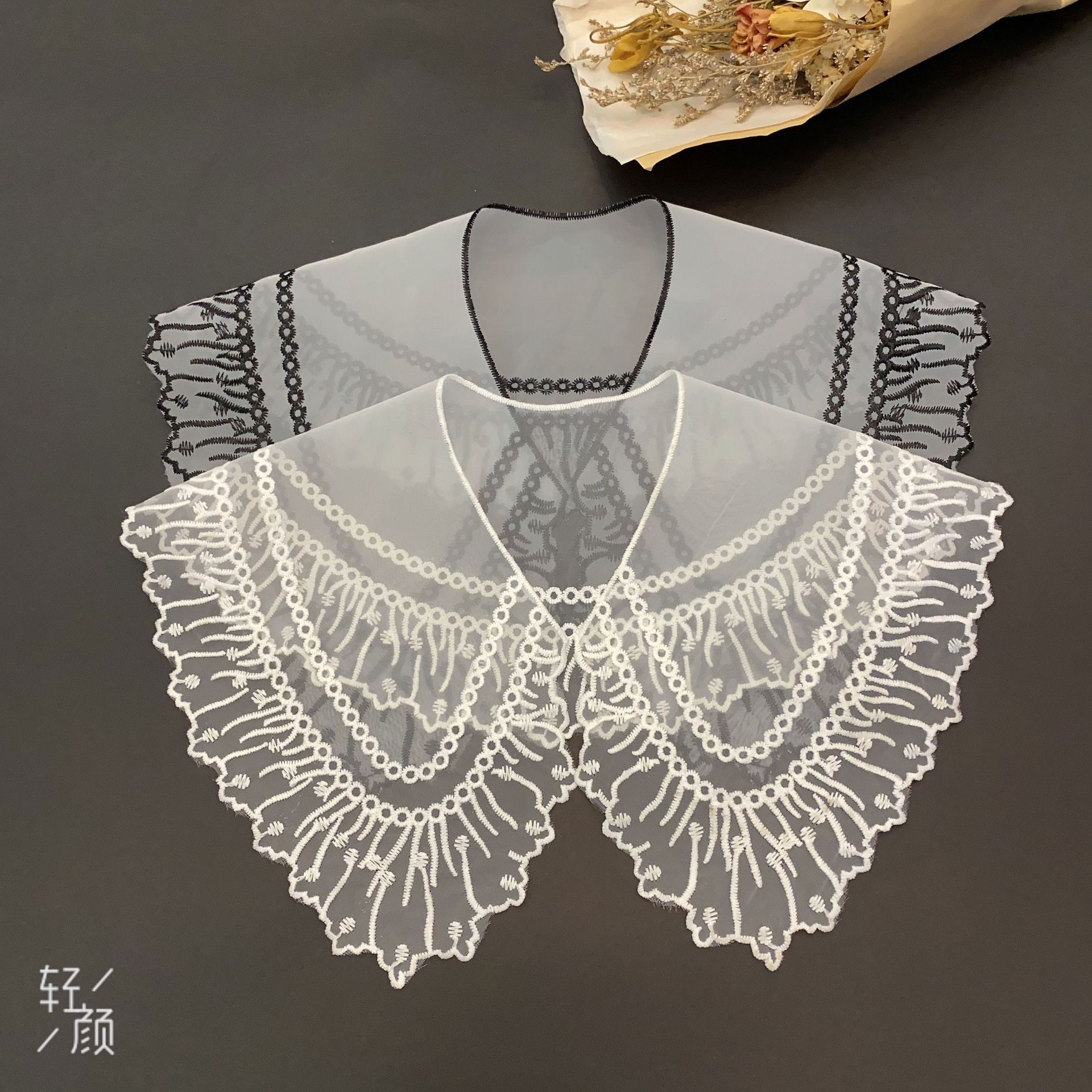 电脑绣毛衣大领水溶牛奶丝假领欧根纱童装连衣裙衣领布贴外贸辅料