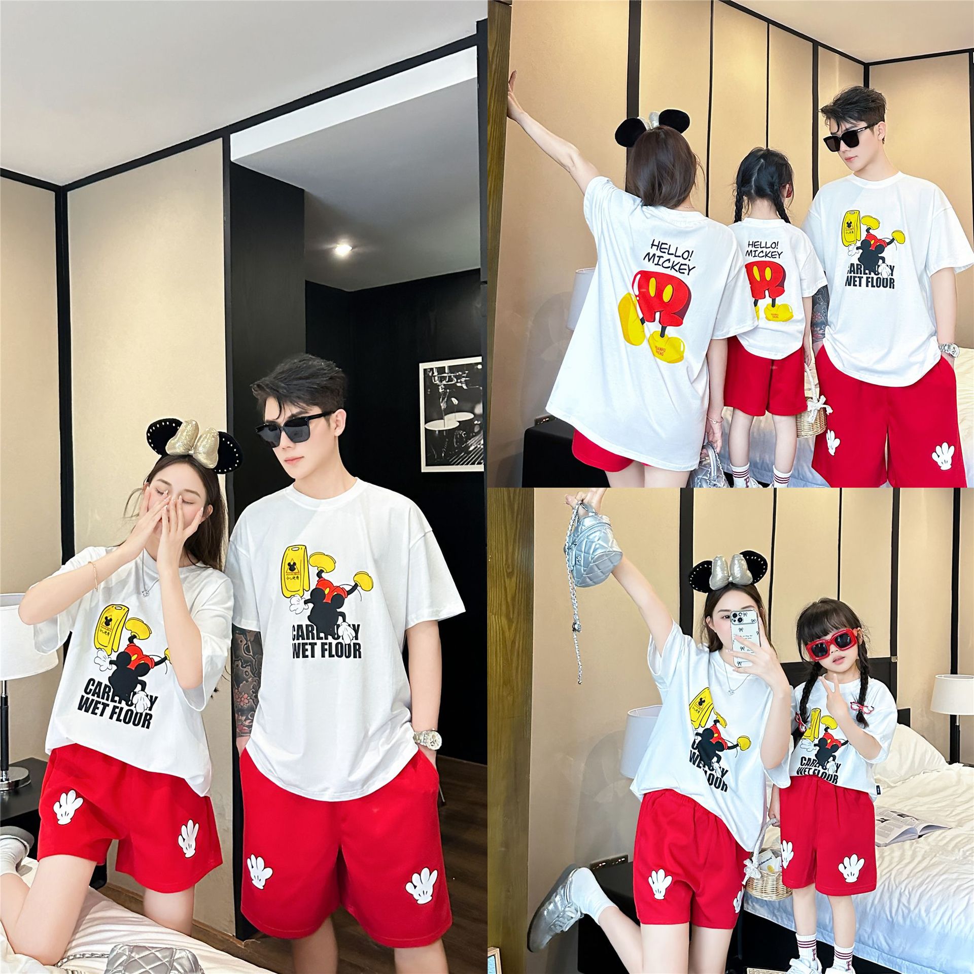 Pakaian Orangtua dan Anak Setelan Keluarga Tiga Orang Empat Pakaian Musim Panas Kartun T-shirt Lengan Pendek Ibu, Ibu, Ibu, Anak dan Anak Pakaian Seluruh Rumah