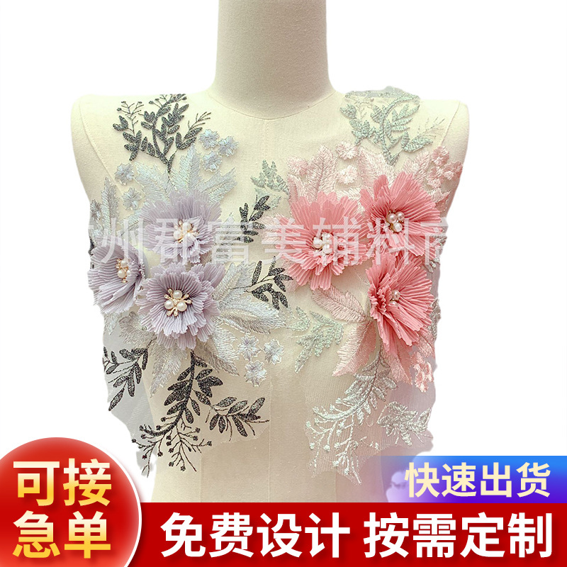 Aksesori pakaian tari cheongsam bunga kerah bordir tiga dimensi warna bunga larut air jahit baru grosir bunga