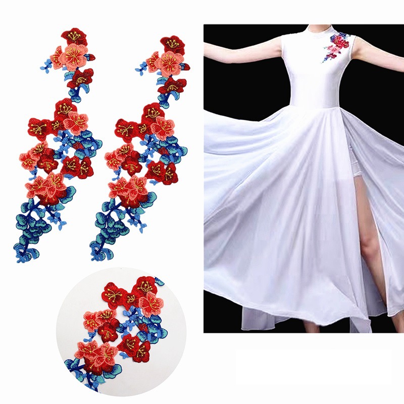Besar panjang tebal larut dalam air bordir bunga gadis cheongsam gaun aksesoris pakaian kain stiker grosir