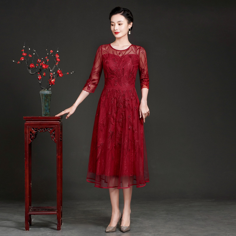 Pakaian wanita baru musim semi dan panas 2022 elegan modis temperamen ibu pernikahan perjamuan gaun ibu harian