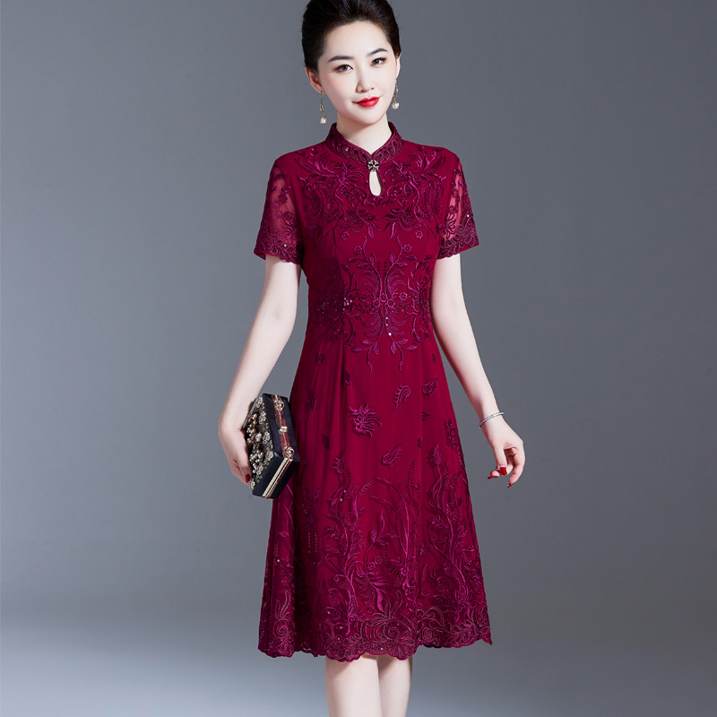 2023 musim panas baru cheongsam 4-warna sederhana besar ayunan cheongsam ibu gaun pernikahan gaun perjamuan pengiriman satu potong